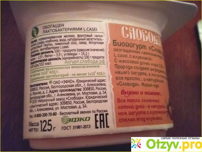 Сок клубники чувствуется, а самой клубники мне попалось мало, всего несколько небольших кусочков. И они больше похожи на яблоко по цвету и консистенции. К молочной составляющей, вроде бы претензий и нет, но молочный вкус сильно забивается клубничным соком. Как из замороженной клубники, такое чувство. После заморозки она становится слишком кислой. Мне, как взрослому человеку, вкусно и так. А дочка забраковала. Съела несколько ложек и отказалась от йогурта, он для неё слишком кислый.