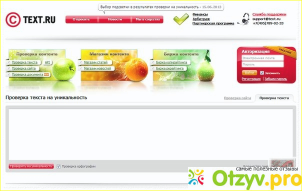 На бирже собственный сервис проверки текстов: на орфографию, спам, воду. Очень строгий, но отличный. То, что иногда что-то виснет или не работает, не умаляет его достоинств. Просто все стремятся пользоваться именно им.