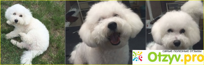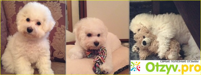 Собак всегда любила, но пока были маленькими дети , то всё ни как не могла решится завести и её. Так что когда дети выросли и выпорхнули, а внуков пока не предвидеться, решили с мужем завести собаку. Правда он хотел побольше, но тут я встала насмерть только - Бишон-фризе, так как видела такую у знакомой и она мне очень понравилась. немного поспорили и муж согласился, куда же он супротив то жены :) . И могу сразу сказать полюбил нашу собаку очень быстро! Приобрели собаку довольно быстро в течении двух месяцев, по объявлению. И вот уже пролетели два года. как наш Пушок с нами. И теперь я могу подвести итоги того. что это за порода. Это самое милое создание в мире, самое спокойное и терпеливое! Уж поверьте мне! Абсолютно не холерик как многие маленькие собачки типа чихуа-хуа или той-терьерчики, в общем очень адекватный характер. Так что все те качества этой породы, которые перечисляются во всех собачьих справочниках полностью верны. Так же мне понравилось, что шерсть почти не пахнет, даже когда мокрая, да из пасти почти нет характерного собачьего запаха. Шерсть как у барашка, а линяет очень мало. Но иногда стричь и чесать-вычёсывать надо постоянно, во всяком случае причесывать слегка почти каждый день, для пушистости , а стричь по мере обрастания. И тогда собачка становится как плюшевая игрушечка :) . Конечно, такая пушистость и белизна становится сильно маркой и если вы прогуливаете собаку часто и во дворе много грязи, то готовьтесь её и частенько мыть, так как не белом всё очень сразу видно :) . Но, оно того стоит когда такой белоснежный комочек спит у тебя на коленях или посапывает у тебя на руке :) !
