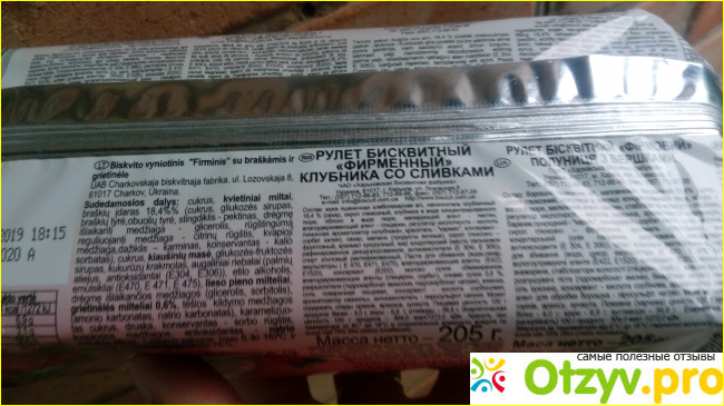 В составе полно Е-шек, разрыхлителей, также есть ароматизатор и стабилизаторы. Состав отпугивает, но очень уж вкусный этот рулет, поэтому несмотря на состав иногда купить можно.