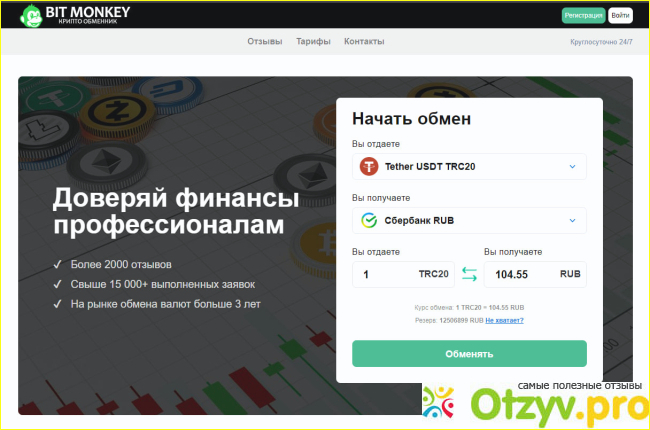Я хочу подчеркнуть, что мой опыт использования Bitmonkey.pro был исключительно положительным. Я чувствую себя уверенно и защищенно, обменивая свои криптовалюты на этом ресурсе. Рекомендую данный обменник всем, кто ценит быстроту, надежность и удобство в проведении операций обмена. Попробуйте сами и убедитесь в качестве этого сервиса!