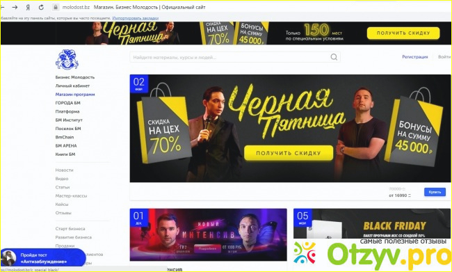 Раздел "Магазин программ" отлично знакомит вас с тем, что предоставляет клиентам "Бизнес-молодость". Там периодически бывают скидки. Если мониторить можно найти выгодные предложения. Например, данное сообщество приняло участие в Черной пятнице.