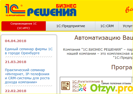 На сайте компании "Бизнес решение" в доступном как мне показалось навигаторе размещены все программные продукты, информация и контакты, услуги, обеспечение, консультации.