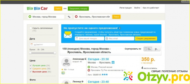 На самом деле на помощь таким людям как раз и приходит сайт под названием Blablacar ru. На этом сайте собрано огромное количество водителей и попутчиков из разных мест. Причем сайт устроен таким образом, что им могут пользоваться все абсолютно бесплатно. А главное, что ресурс постоянно проверяет водителей, которые зарегистрированы на этой площадке. Практически на каждого водители на сайте есть отзывы. И попутчик может выбирать такого водители, которые ему больше всего понравился.