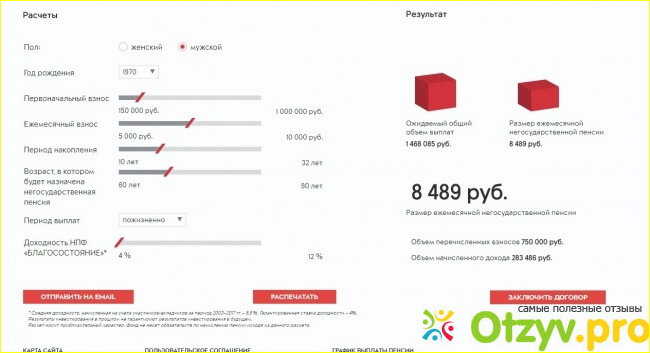 Очень удобная функция "пенсионный калькулятор", с помощью которого можно рассчитать свою ежемесячную пенсию, будучи клиентом НПФ Благосостояние.