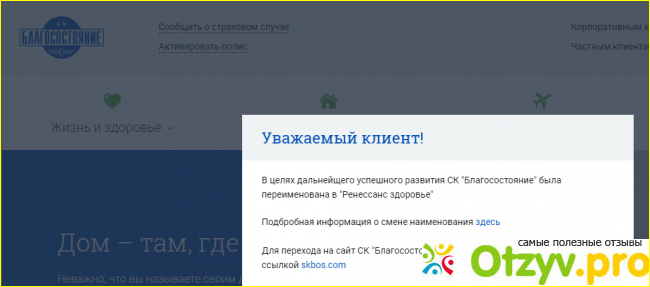 Вернее будет выразиться так – страховая компания была переименована. Прямо на сайте высвечивается окно, в котором посетителей переадресовывают на новый сайт страховой компании.
