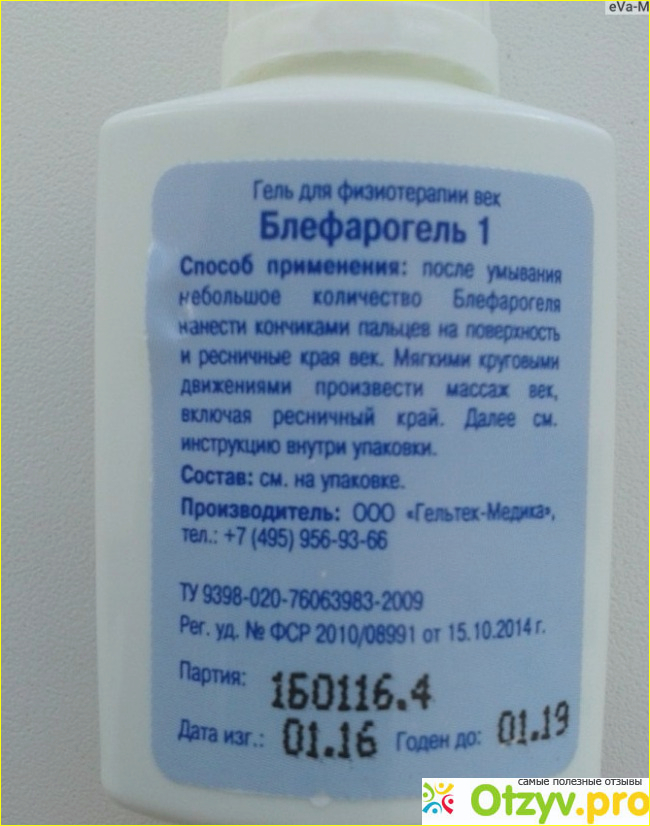 Это Блефарогель-1 и Блефарогель-2. В препарате под номером два, единственное отличие от первого, это то что в его составе присутствует сера. Она помогает нормализовать уровень влаги в клетках кожи, которая обрабатывается данным препаратом. Я лично, пользуюсь Блефарогелем с цифрой один. Как видите, блефарогель можно использовать как в медицине, так и в косметологии. Произвобитель Блефарогеля "Гельтек-Медика. На обратной стороне бутылочки с составом написаны телефоны производителей и срок годности препарата. Кстати, он довольнодлительный. Три года. " Уже не один человек проверял действие его действие на себе и нареканий не было.