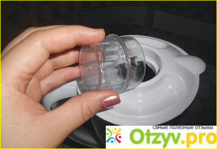Ёмкость можно снять и использовать при необходимости как кувшин: на неё нанесены мерные насечки с двух сторон.
