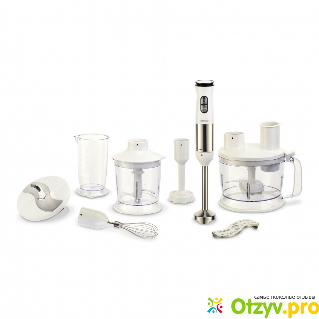 У него большая комплектация. Вы только посмотрите, что входит в комплект. Это же не только погружной блендер, которым пользоваться можно для перебивания еды ребенку, в его же тарелочке. Нет. С помощью такого агрегата можно делать все что угодно. Мясные и печеночные паштеты, нежнейшие по консистенции, измельчать лук, овощи, фрукты, создавать великолепные крема для торта, и делать намазку на куличи. Все что угодно, одним словом. Главное иметь желание творить красоту и вкуснятину.