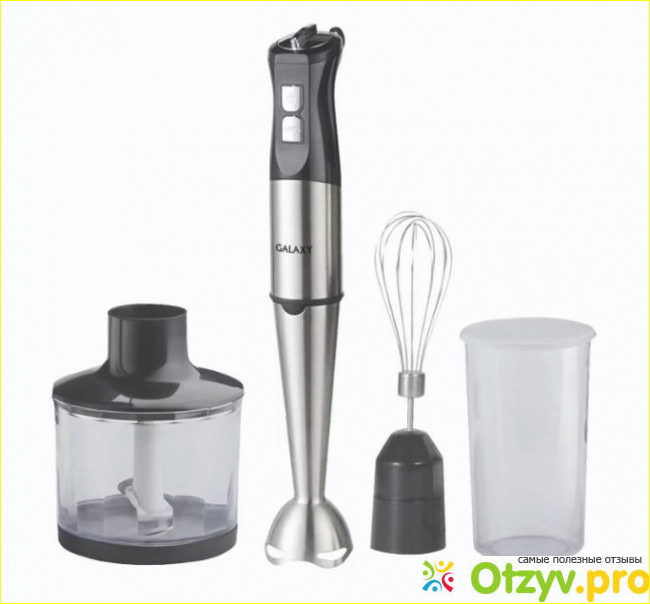 На ручке блендера есть удобная клавиша, предназначенная для плавной регулировки скорости движения ножей блендера или венчика для взбивания, который, кстати, также входит в комплектацию погружного блендера Galaxy GL 2112. Все погружные детали, входящие в комплект блендера, изготовлены из высококачественной нержавеющей стали.