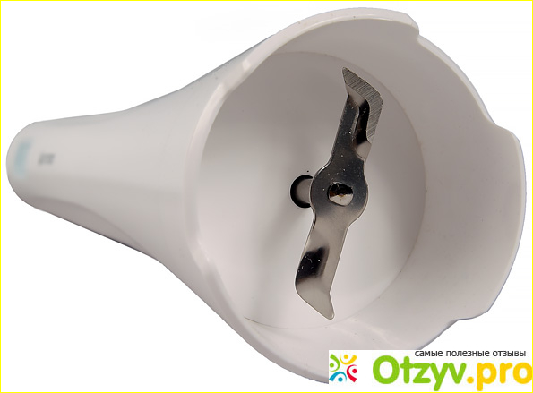 Двухлопастный нож выполнен их нержавеющей стали, она несъемная, при использовании будете осторожны и соблюдайте правила безопасности.