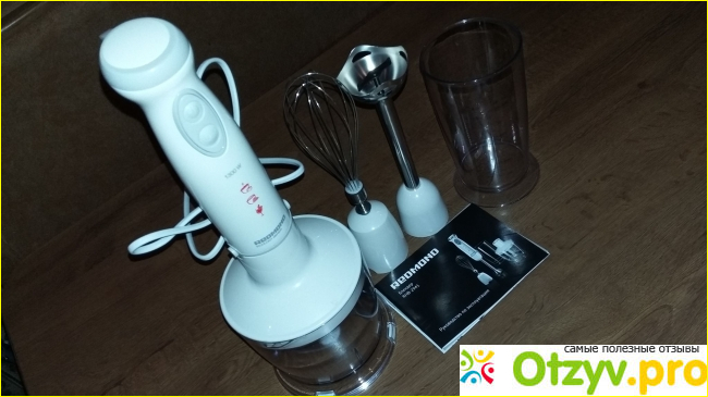 Блендер торговой марки REDMOND RHB 2941 имеет тип - погружной. Ножка блендера изготовлена из стали. Мощность у него 1300 Вт, что мне кажется достаточно приличной мощностью. Имеет количество оборотов в минуту 16000. Стакан у блендера имеет объем в 0,5 литра. В комплекте к нему идут насадки такие как венчик, чашка - измельчитель и нож - измельчитель. Примечательно что прибор имеет такой режим как Турбо, очень мне эта функция нравиться, такая штука классная. Материал изделия это метал и пластик, у прибора так же прорезиненные ножки, что не дает блендеру ездить и скользить по поверхности стола, это тоже очень удобно. Работает только от сети и имеет провод длинной 1,3 метра. Весом мой блендер чуть более одного килограмма , а точнее 1,18 кг веса.