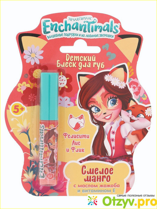 Продукт имеет яркую кричащую упаковку с изображением веселых мультяшных героев-девочку Фелисити и лисенка Флика. На упаковке можно найти информацию о составе продукта, сроках годности и способах применения блеска для губ.