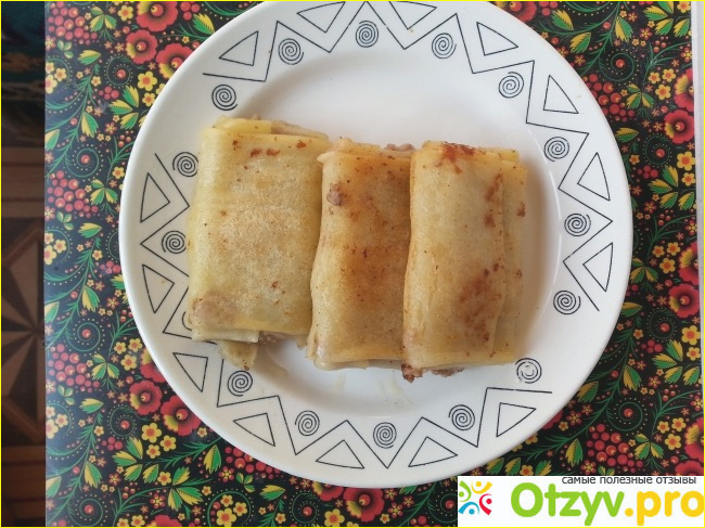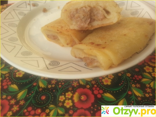 Конечно, купила я их из-за цены, очень уж казалось мне выгодной. Конечно, я догадывалась, что за такие деньги не стоит много ждать, но то, что у меня получилось разочаровало меня полностью. Эти блинчики, на мой взгляд, не стоят и половины своей цены. Тесто очень жесткое и грубое, на вкус довольно пресное. Что касается начинки, то с первого блинчика у меня не получилось ее распробовать, так как уж очень ее оказалось мало. Как только я все-таки смогла найти начинку, то долго не могла понять из чего она сделана, так как на вкус фарш тоже оказался довольно пресным и безвкусным. Складывалось ощущение, что вместо фарша в блинчики положили какой-то соевый фарш с крахмалом. Итогом моего неудачного кулинарного эксперимента стал личный вывод, что хорошие готовые блинчики ну никак не могут стоить ниже 70 рублей.