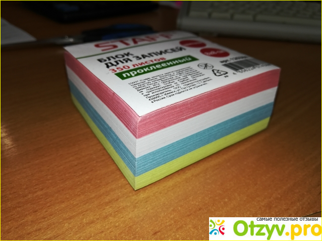 Он представляет собой 350 листов размером 8*8 см четырех разных цветов.
