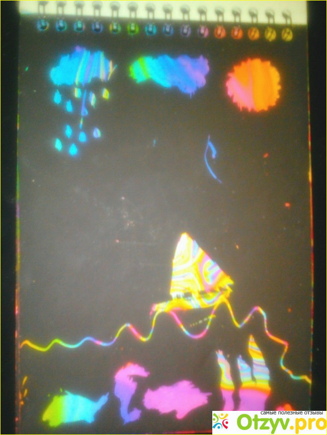 Так как за черным фоном пряталось разноцветное основание, на котором получались яркие и не обычные рисунки. Время мы провели очень весело.