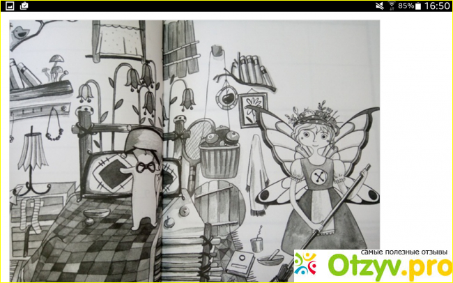 А еще в этом блокноте масса симпатичных иллюстраций, где та самая флайледи, феечка с обложки приводит в надлежащий вид шкафы, делает уборку, готовит и так далее. Они выполнены в виде контурных рисунков с тонировкой разной плотности (как если бы их слегка раскрасили простым карандашом), так что, кто любит модные нынче антистресс-раскраски, тот получит дополнительный бонус в виде этих симпатичных рисуночков.