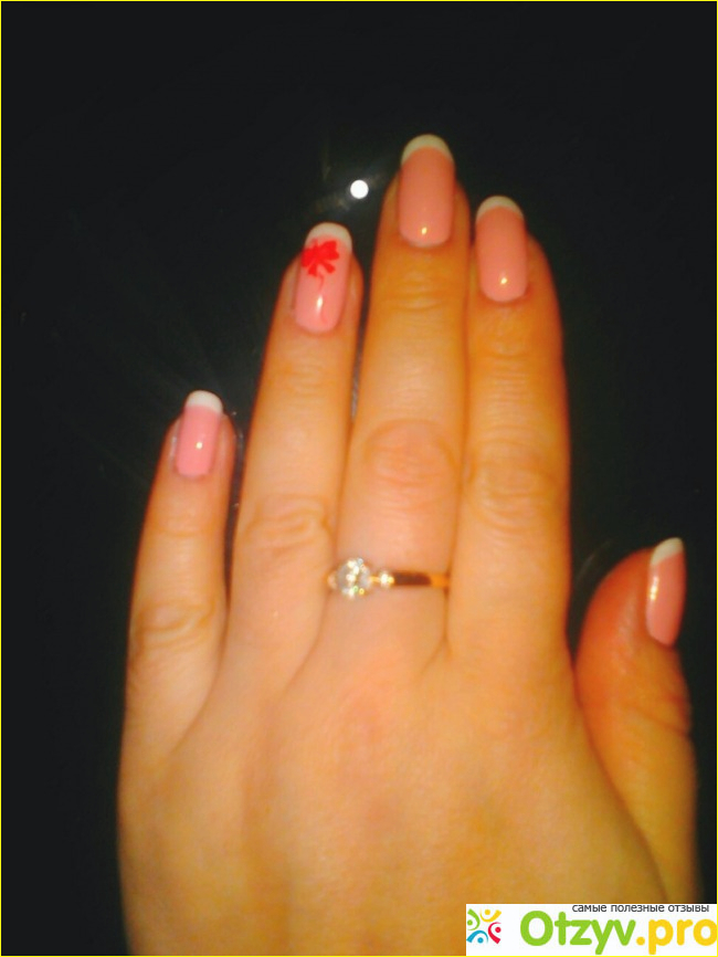 Иногда использую его на безымянный палец и на нем делаю рисунок, а на остальные ногти наношу красный оттенок. Но чаще я использую белый гель лак для французского маникюра.