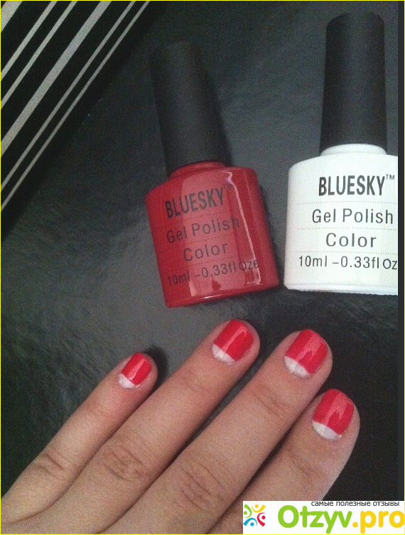 Эксперимент я решила провести с уже проверенным мною цветом "Bluesky Gel Polish" номер 80508 (мой отзыв об этом цвете читайте по следущей ссылке: ссылка и нарисовала так называемые "лунки"))). Конечно первый раз получилось немного коряво, но в целом с там покрытием ходить можно.