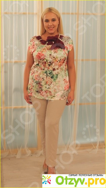 Заказала как подарок маме. Очень остались довольны! Цветочный принт создает весеннее настроение, а небольшие излишки фигуры совершенно не видны под блузой. Вещь приятная на ощупь и мягкая.