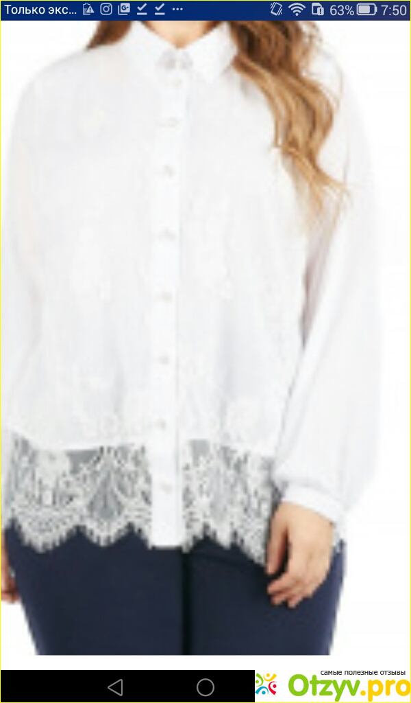 Всем известно, что наши фигуры отличаются от западных. В итоге я решила заказать себе блузу. Блуза нужна мне для повседневной носки, для работы. Так как я работаю в офисе, нужна одежда дресс код, то есть официальная. Но иногда можно позволить себе одеть именно то, что я хочу. Поэтому я себе и выбрала такую именно блузу. Выбрала блузу "белоснежная улыбка". Название, думаю ей подходят. Она очень веселенькая и при этом очень белая. Качество у нее очень хорошее. Ткань нежная, когда одеваешь очень приятная к телу. Сама ткань при этом не мнется и что интересно не садится. Стираю я ее в основном в машинке на бережном режиме. Сам фасон не обычно сшит. Под низом ткань, а сверху нашиты кружева. По длине она ниже бедра, сидит очень элегантно и модно. Кроме этого она ничего не обтягивает, а сидит свободно. Рукава у нее длинные и тоже свободно сидят. В ней можно ходить даже летом в прохладную погоду. Что замечательно, что она практически не мажется. А если и мажется, то в основном это рукава и их можно застирать. При этом, когда они высыхают на них не остается разводов. Это облегчает труд, так как не надо ее в машинку стиральную часто класть стирать. Я стираю ее в раз в две недели. При этом застирываю после каждого одевания. На мой взгляд отличная блуза. Что касается цены, то она стоит в магазине 4399 рублей. Я же приобрела ее по совместных покупках всего 1500 рублей