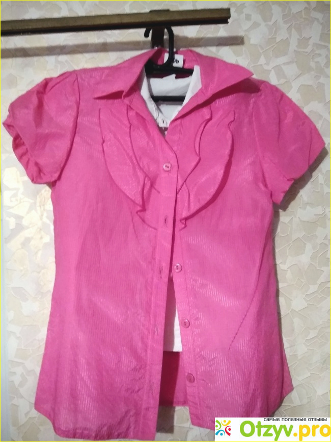 Но найти ничего не удавалось. Мне предлагали водолазки или практически блузки-сетки, которые мне не нравятся. И тут случилось чудо, я нашла точку, где смогла подобрать на дочку аж четыре разные блузки (по цене 540-560 рублей). Эта розовая с короткими рукавами стала самой любимой для дочки.