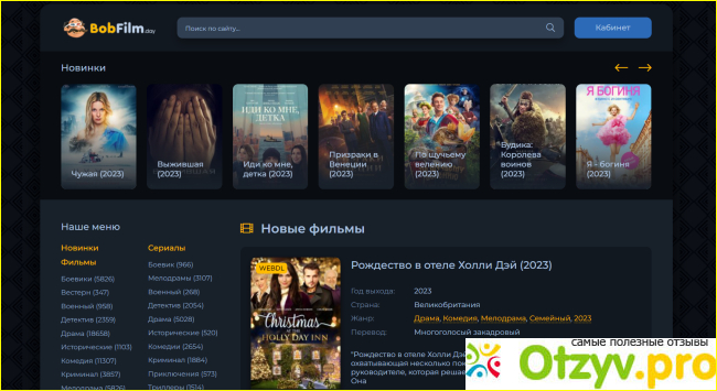 Очень давно пользую сайтом BobFilm.day, что хочу сказать. Огромное количество фильмов и сериалов, мне кажется, на сайте находятся все фильмы планеты и даже новые, которые выйдут только в 2024! Навигация на сайте очень удобная. Отсутствие рекламы на сайте это его огромный плюс!