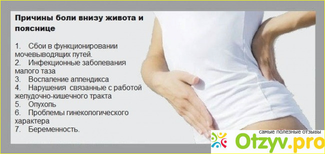 Боль в животе имеет множество причин. Влияют на самочувствие заболевания желудочно-кишечного тракта (колит, дисбактериоз), инфекционные заболевания кишечника и малого таза (кольпит, сальингоофорит, андексит). Также неприятные ощущения возникают в следствие проблем позвоночника (грыжами, сдавлением дисков, спазмами мышц).