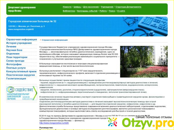 В сегодняшней моей статье мне хочется рассказать о городской клинической больнице номер 52, расположенной в столице нашего государства, городе Москва.