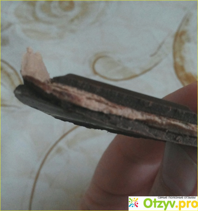 Так вот, не все вкусы мне понравились. Что касается вкуса «тирамису», то шоколад с такой начинкой я рекомендую к покупке, поскольку сочетание получилось очень гармоничным. Что касается начинки, то она светлого коричневого цвета, прилагаю фото: