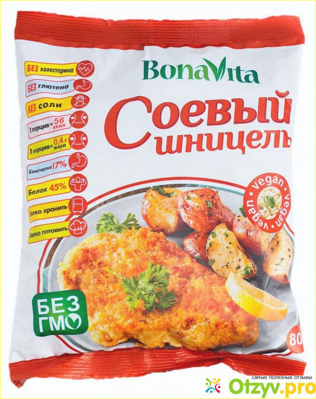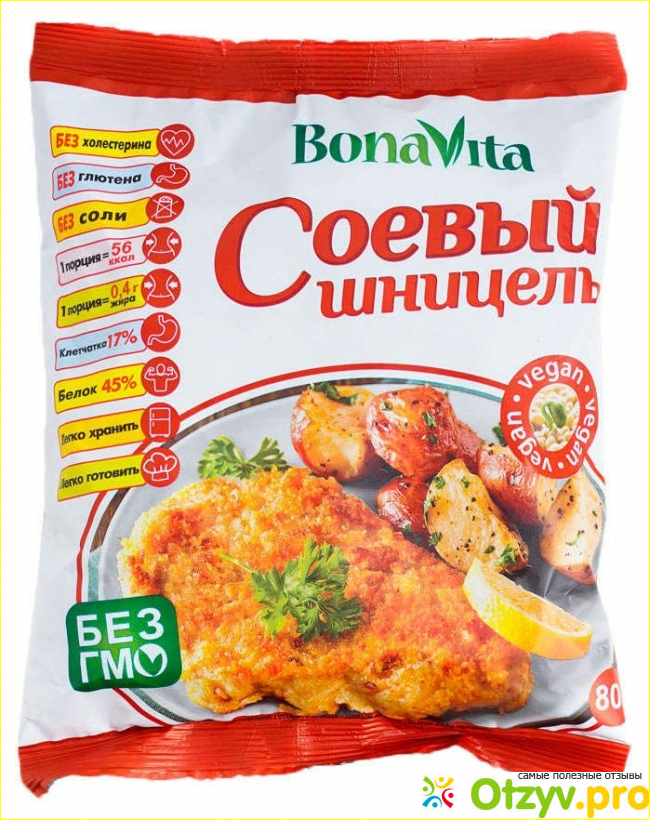 В моем маленьком городке довольно ограниченный выбор продуктов из осевых бобов. Соевое мясо представлено одним производителем и его я покупаю в большом супермаркете. Для того, чтобы попробовать что-то новенькое, я нашла соевый шницель от Бона Вита.