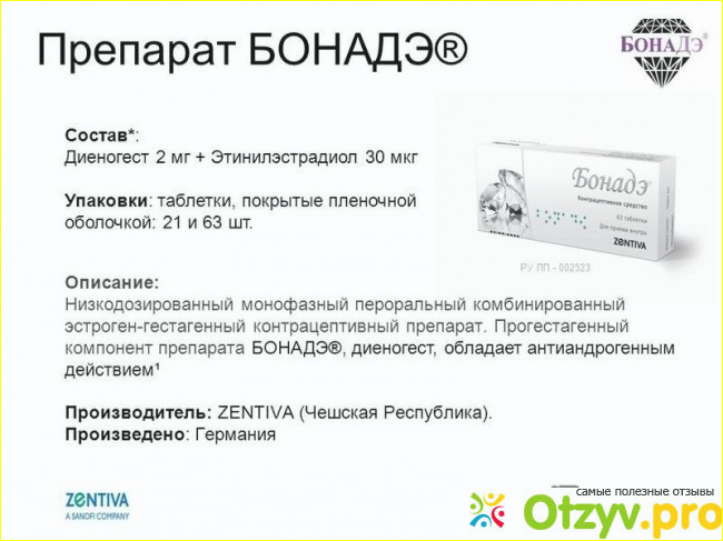 Бонадэ, является - комбинированным контрацептивным средством, содержащим такие элементы, как - эстрогены и прогестагены. Низкодозированные монофазные пероральные комбинированные эстрогены-гестагенные контрацептивные препараты. Что касается действия препарата Бонадэ , по мнению большинства врачей оно целиком и полностью основывается на совмещении действии разнообразных факторов, наиболее важное из которых –это осуществление подавление овуляционных процессов в организме женщины, а также, осуществление увеличения вязкости секретов в шейке матки.