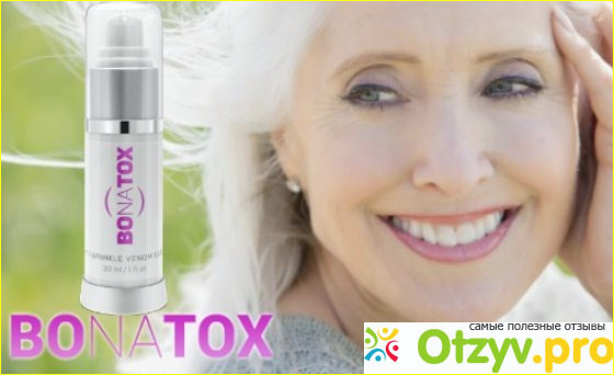 что от нее реально очень скоро можно ждать результат, так как сыворотка Бонатокс — натуральный препарат на основе растительных компонентов, так что здесь собрано все самое полезное и действенное, это компоненты, которые в комплексе создают идеальную и мощную формулу в борьбе с морщинами, а так же как многие пишут, то имеется прекрасный эффект на кожу и ее состояние, потому что она начинает приобретать равномерный оттенок, эта сыворотка тем хороша, что она избавляет постепенно от проявления пигментных пятен, кроме того она не просто выполняет свою основную функцию избавления от морщин, но и так же укрепляет тонус кожного покрова, улучшает приток крови, поэтому лицо становится таким ухоженным, бархатным, к тому же часто еще сравнивают процедуру с уколами красоты и такое средство и пишут, что это совершенно безболезненно и к тому же нет никакой зависимости, вместо всего этого сразу же можно отметить замечательный косметический эффект и продолжительность его, так как все эти свойства носят накопительный характер.