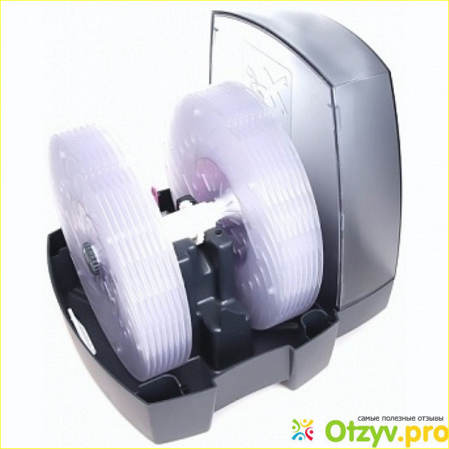 Для того чтобы вода в очистителе всегда поддерживалась в чистом виде, в приборе имеется специальный инновационный ионизирующий стержень серебряного цвета, он насыщает воду в поддоне. Срок годности данного стержня составляет один год. После чего, его стоит заменить.