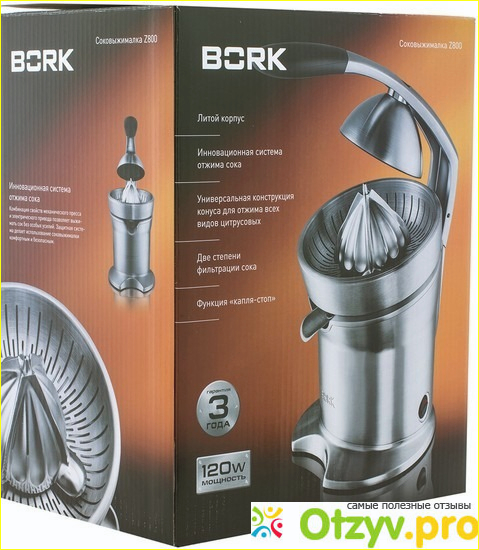 Как обычно я купила упаковку сока и поставила в холодильник, чтобы охладился, но свекровь налила себе и выпила, через час её увезла скорая, а я и подумать не могла, что причиной отравления мог стать покупной сок, когда я его вскрыла, то увидела большое пятно плесени, с того дня я покупной не признаю. А вот от сока не хотелось отказываться и я решила делать его самой, только для этого мне нужно было приобрести соковыжималку. Первым делом я приобрела ручную конусообразную соковыжималку, но поняла что это очень долго, при этом сок не полностью выдавливается с цитруса и утомительно, потому как не так то уж и легко. Вот тогда ко мне пришла идея приобрести электрическую соковыжималку, но только хорошую и надёжную, поэтому я начала присматриваться к подходящим под мой запрос. Поиски мои были не очень то и долгими, увидев металлическую соковыжималку работающую по принципу пресса, я загорелась именно её и приобрести, ещё не зная модели производителя, но мне показалось, что именно такая конструкция будет полностью отдавать весь сок из цитрусов. Цена меня немножко испугала, потому как она не из дешевых, но всё же желание моё было превыше всего, пить сок. Покупку я всё-таки сделала, мне дали гарантию аж на три года, это была соковыжималка Bork Z800, неизвестного мне производителя. То, что она не лёгкая, меня сразу не испугало, ведь корпус металлический, сделан из нержавеющей стали, но для меня это показалось очень даже достойно и более внушало доверие, относительно её долгой работы.
