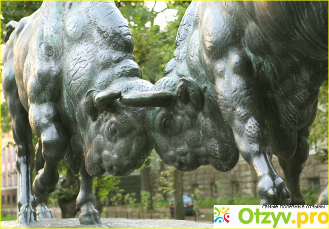 "Борющиеся зубры"- работа Августа Гауля, установлена в Кенигсберге в 1912году. Это был один из известнейших немецких скульпторов, который, создавая свое новое творение, потратил массу времени наблюдая за животными, и создал множество рисунков. Популярность свою он обрел в Германии.