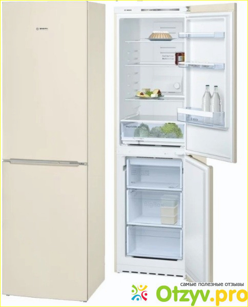 Холодильник BOSCH KGN39NL13R. Почему остановилась выбор именно на нём, сейчас подробно расскажу. Первое, что мне понравилось в нём его бежевый цвет, кофе с молоком. Очень приятный и нежный цвет гармонично вписывался в интерьер на кухне. Сам холодильник сделан из металла и пластика внутри соответственно. Морозильная камера находится внизу, кстати, очень удобно, и именно мы так и хотели. Двухкамерный холодильник очень вместительный с общим объёмом 315 л. В холодильнике имеются функции как индикация повышение температуры, когда открываешь дверцу, загорается яркая светодиодная подсветка LED. Ну а если дверца не плотно закрыта, то поступит сигнал. Дополнительные возможности у этого двухкамерного холодильника охлаждения и заморозка и индикация температуры, в общем как во многих обычных других холодильников. Полки в холодильнике сделаны из стекла. Но это, как и во многих холодильниках, теперь что касается работы самого аппарата. Холодильник работает не совсем тихо к сожалению. Немножко шумно, но так как кухня от комнаты у мамы находится далеко и этот небольшой шум не раздражает, так как старый холодильник шумел гораздо сильнее, чем этот. А этот по сравнению со старым можно сказать и не шумит.
