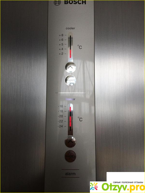 Так же на фасадную панель выведена регулировка температуры холодильной и морозильной камеры. Что является для меня совсем бесполезным приспособлением. Ведь я температуру выставила один раз и забыла про такую функцию.