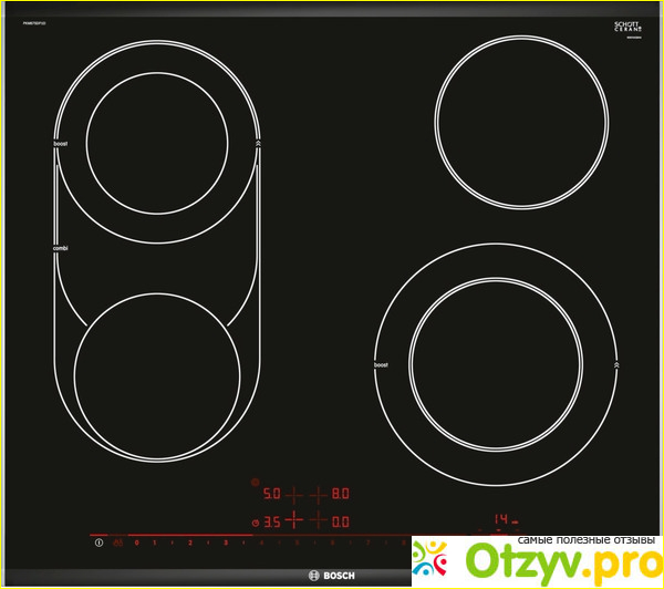 - CombiZone: большая гибкость благодаря комбинации 2-х конфорок для приготовления пищи в кастрюле и на сковороде.