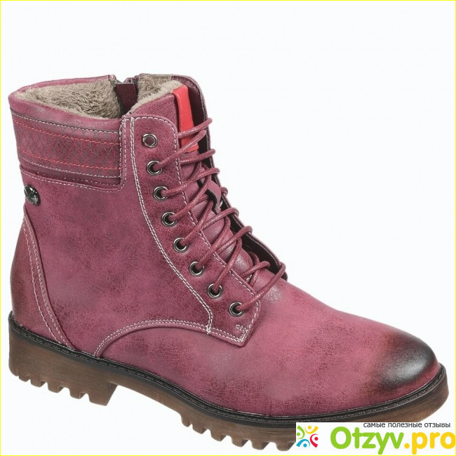 Понравились они мне сначала на фото на сайте, модель вроде обычная, это ботиночки на удобной протекторной подошве, которая, кстати, не будет скользить. Ботинки на шнурках и плюс есть молния сбоку. Ботинки не низкие и не сильно высокие, то, что надо. Но больше всего мне понравился цвет ботинок, они бордовые, цвет красивый и обращает на себя внимание.