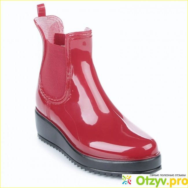 Модель, выполненная в сочном красном цвете, подойдет и для создания потрясающего настроения, и для запоминающегося образа. Никакие лужи и непогода не смогут испортить внешнего великолепия ботинок, ведь плотная резина надежно отталкивает и грязь, и воду.