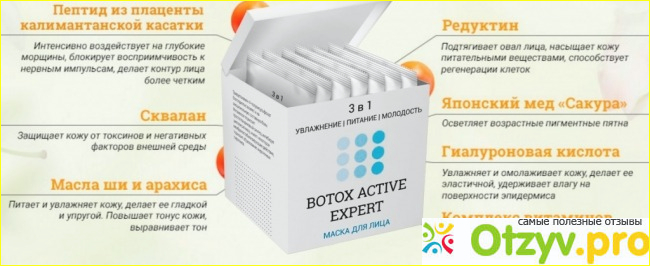 Botox active expert - это крем-маска для лица, которая используется для подтяжки и питания кожи лица. По сути, это безиньекционное средство для омоложения лица.