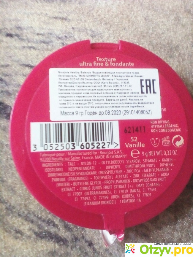 Изучить состав у меня не получилось, потому что вся информация написана на английском языке. Единственное, что мне удалось понять, пудра произведена в Германии.