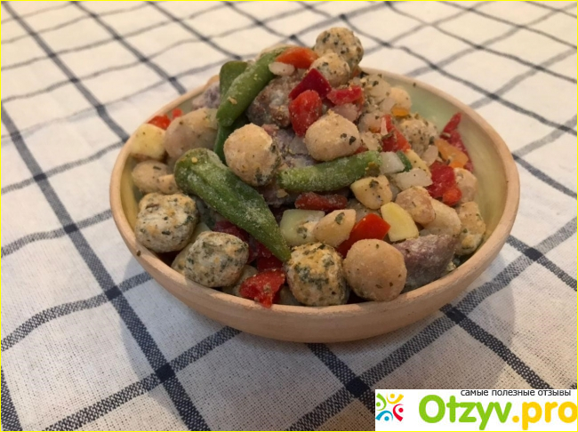 - кусочки мяса крупные. Мясо нежное, не иссушенное, словно приготовленное дома. И вообще, муж сказал, что даже странно для заморозки иметь такой домашний насыщенный вкус.