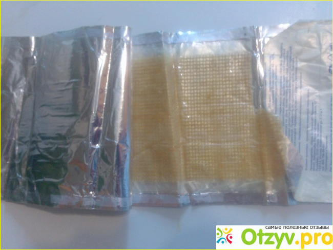 Очень хорошее средство, сделанное буквально на стыке народной и официальной медицины. Упаковка плоская, внутри - тканевая повязка из сетчатой ткани, пропитанная специальным средством. В составе этой пропитки есть медицинские средства - бранолинд, глицерин и т.