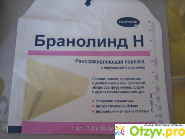 На следующее утро я пошла в аптеку и мне там посоветовали повязки ранозаживляющие Бранолинд. Честно говоря и не думала, что они так хорошо помогают. Сомневалась, но все-таки купила. Я и на ночь делала повязки и утром перед работой делала. Повязки Бранолинд как сеточка, они пропитаны перуанским бальзамом (очень сильно воняет он). Этот бальзам и обладает ранозаживляющим действием. Я проделала повязки такие около 5 дней и все прошло удачно. Потом появились корочки, они стали чесаться и вскоре совсем содрались. Вот так успешно я вылечила ожог. А поначалу казалось, что у меня вообще все опухло, думала, что инфицирование пошло. но все нормально.