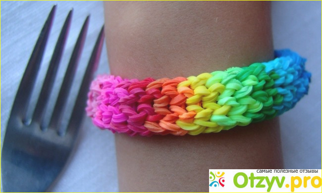 Цвета в наборе очень яркие и их очень много, также потом браслет можно расплести и резиночки все останутся целыми.
