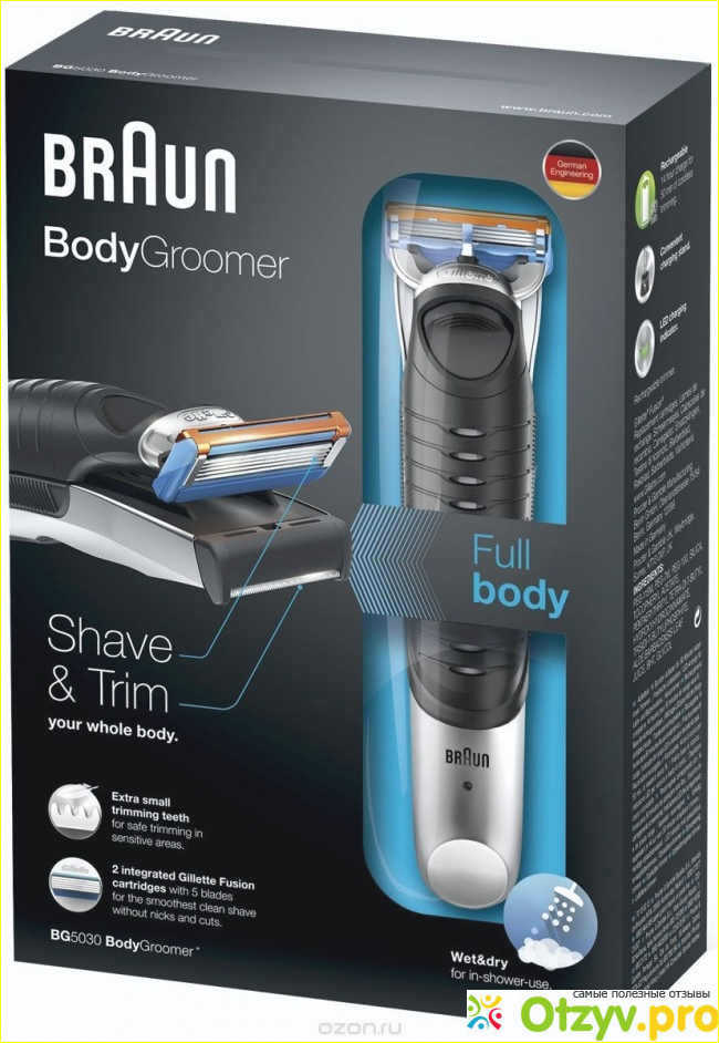 Браун славится тщательно продуманными приборами, хорошо продуманными инструментами и Braun BG 5010 электробритва не является исключением - это стопроцентно водонепроницаемая бритва, что означает, что ее можно использовать в душе. Очень многим мужчинам нравится бриться в душе, так как горячая вода смягчает кожу, делая удаление волос более легким, и волоски сразу же смываются водой и не нужно потом за собой убирать.