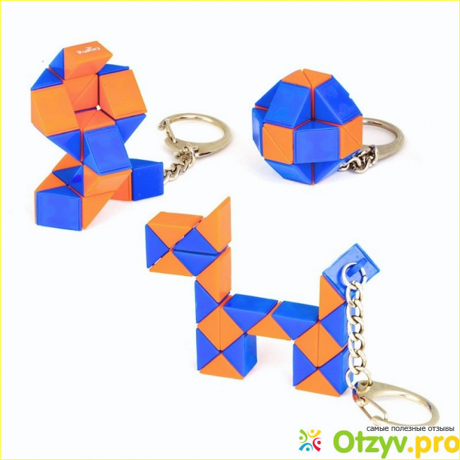 Брелок-головоломка Rubiks «Змейка» — изделие, которое может быть повешенным на связке ключей. Носит увлекательный и развлекательный характер, игрушка кубик Рубик, которая может быть сложена в различных причудливые формы и фигуры.