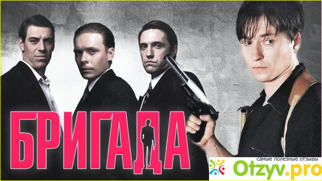 «Бригада» — кинолента российского розлива, которая показывает про криминальную жизнь, первый отечественный фильм, который ничем не хуже зарубежных фильмов. Режиссер Алексей Сидоров при создании своего шедевра больше ориентировался на американскую классику, такую как: "Крестный отец", "Однажды в Америке" и тому подобных кинолентам. События в фильме сюжеты растягивается на протяжении одиннадцати лет, повествует о дружбе и судьбе четырех товарищей: Саши Белого и его бригады. Их “бригадирство” начинается с небольшого рэкета, и постепенно набирает силу, наращивает мощь и властолюбие, поэтому все заканчивается выборами в Государственную Думу.